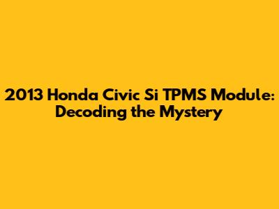 2013 Honda Civic Si TPMS Module: Troubleshooting & Replacement