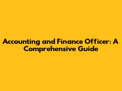 Accounting And Finance Officer: A Comprehensive Guide