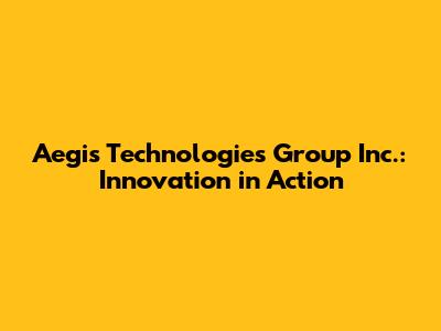Aegis Technologies Group Inc.: Innovation In Action