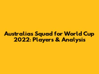 Australia's Squad For World Cup 2022: Players & Analysis