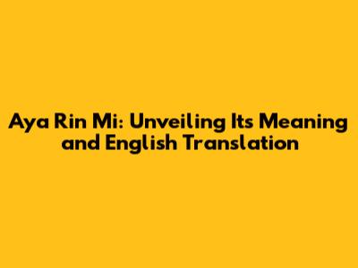 Aya Rin Mi: Unveiling Its Meaning And English Translation