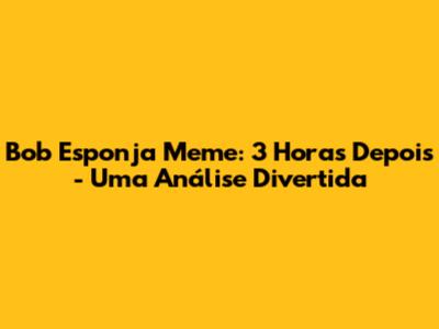 Bob Esponja Meme: 3 Horas Depois - Uma Análise Divertida