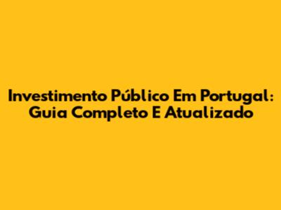 Investimento Público Em Portugal: Guia Completo E Atualizado