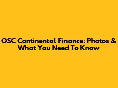 OSC Continental Finance: Photos & What You Need To Know