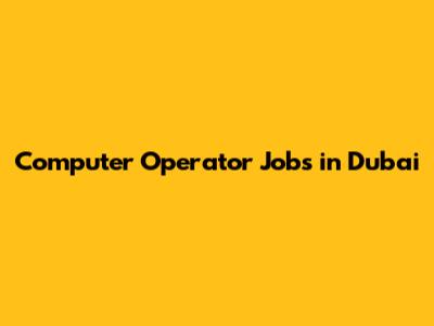 Computer Operator Jobs In Dubai