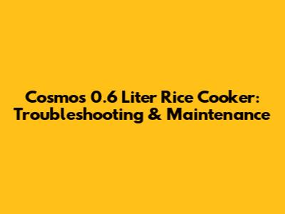 Cosmos 0.6 Liter Rice Cooker: Troubleshooting & Maintenance