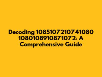 Decoding 1085107210741080 1080108910871072: A Comprehensive Guide