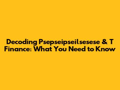 Decoding Psepseipseilsesese & T Finance: What You Need To Know