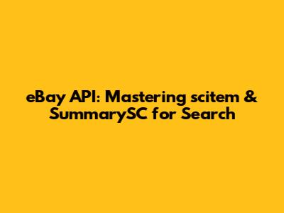 EBay API: Mastering Scitem & SummarySC For Search