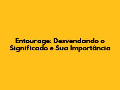Entourage: O Que Significa E Por Que É Importante?