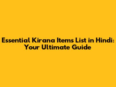 Essential Kirana Items List In Hindi: Your Ultimate Guide