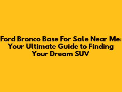 Hey guys! So, you're on the hunt for a Ford Bronco Base? Awesome choice! These SUVs are seriously cool and perfect for adventures. But finding the right one, especially a base model, can feel like a treasure hunt. Don't worry, I've got you covered. This guide is your ultimate resource for tracking down a Ford Bronco Base for sale near me, packed with tips, insights, and everything you need to know to make the process smooth and successful. Let's dive in and find you that Bronco!