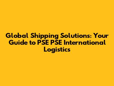 Global Shipping Solutions: Your Guide To PSE PSE International Logistics