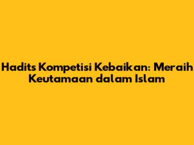 Hadits kompetisi dalam kebaikan adalah sebuah konsep fundamental dalam Islam yang mendorong umatnya untuk berlomba-lomba dalam melakukan amal saleh. Ini bukan sekadar anjuran, melainkan sebuah dorongan kuat yang bersumber dari Al-Qur'an dan Sunnah, dua sumber utama ajaran Islam. Konsep ini mengajarkan kita untuk tidak hanya berbuat baik, tetapi juga untuk berusaha menjadi yang terbaik dalam segala aspek kehidupan, mulai dari ibadah hingga interaksi sosial. Dalam artikel ini, kita akan menjelajahi berbagai aspek penting dari hadits kompetisi dalam kebaikan, termasuk dalil-dalilnya, manfaatnya, cara mengimplementasikannya dalam kehidupan sehari-hari, serta contoh-contoh nyata dari persaingan positif ini.