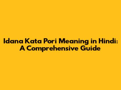 Idana Kata Pori: Meaning & Usage In Hindi