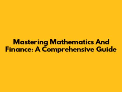 Mastering Mathematics And Finance: A Comprehensive Guide