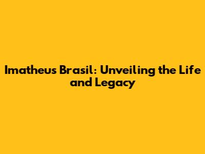 Imatheus Brasil: A Deep Dive Into His Life