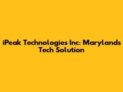 IPeak Technologies Inc: Maryland's Tech Solution