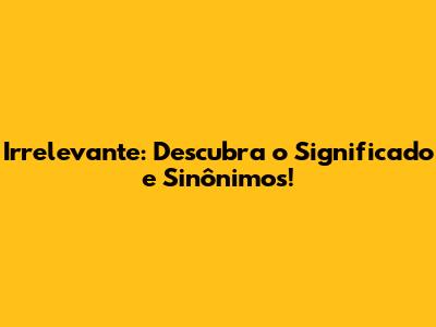 Irrelevante: Descubra O Significado E Sinônimos!