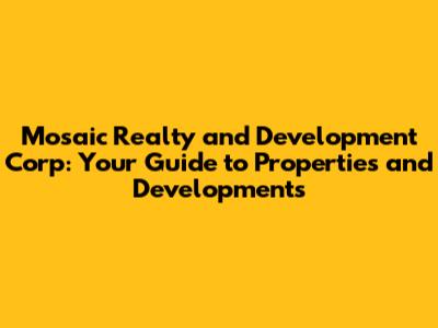 Hey guys! Ever heard of Mosaic Realty and Development Corp? If you're in the market for properties or just curious about real estate development, you've come to the right place. This article will dive deep into what Mosaic Realty is all about, their projects, and why they might be the perfect fit for your real estate needs. So, let's get started and explore the world of Mosaic Realty!
