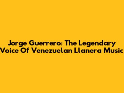 Jorge Guerrero: The Legendary Voice Of Venezuelan Llanera Music