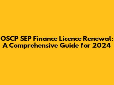 Understanding the OSCP SEP Finance Licence and Its Renewal