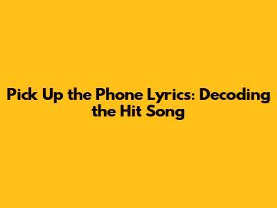 Pick Up The Phone Lyrics: Decoding The Hit Song