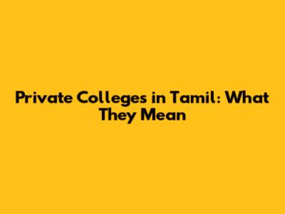 Private Colleges In Tamil: What They Mean