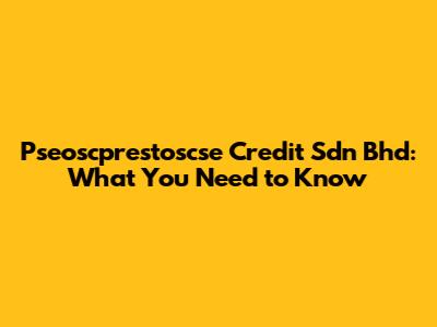 Pseoscprestoscse Credit Sdn Bhd: What You Need To Know