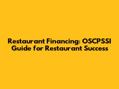 Restaurant Financing: OSCPSSI Guide For Restaurant Success