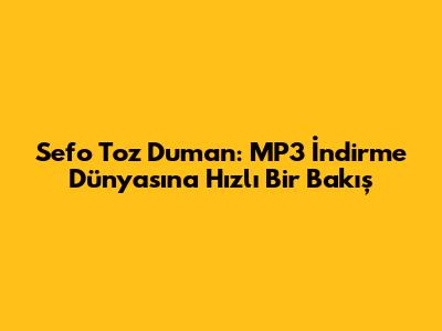 Sefo Toz Duman: Hızlı MP3 İndirme Ve Şarkı Keyfi