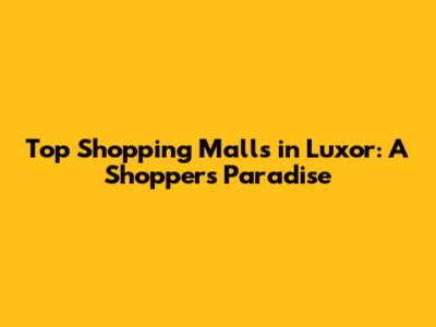 Top Shopping Malls In Luxor: A Shopper's Paradise