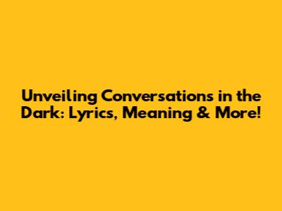 Unveiling 'Conversations In The Dark': Lyrics, Meaning & More!