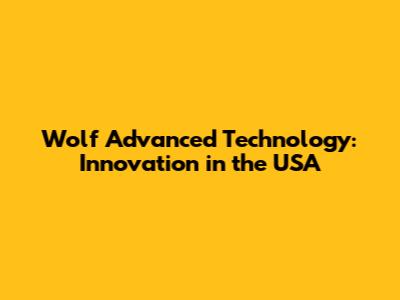 Wolf Advanced Technology: Innovation In The USA